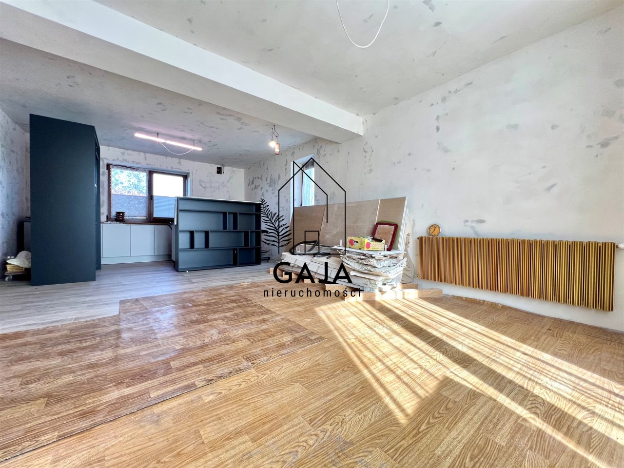 W cenie nieruchomości pozostaje również część materiałów wykończeniowych, które umożliwią dokończenie prac na parterze, m.in. panele podłogowe do jednego z pokoi oraz drzwi wewnętrzne.