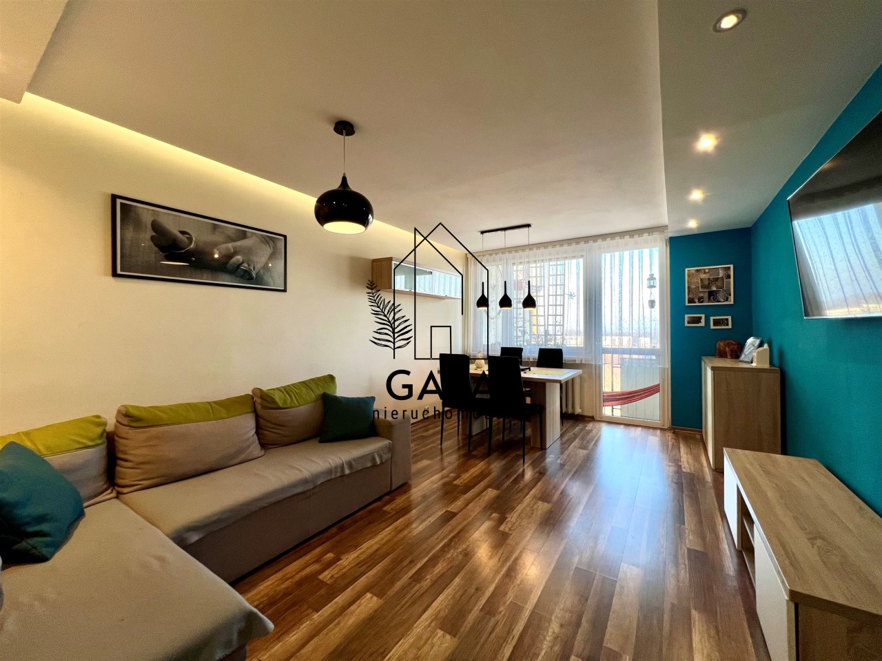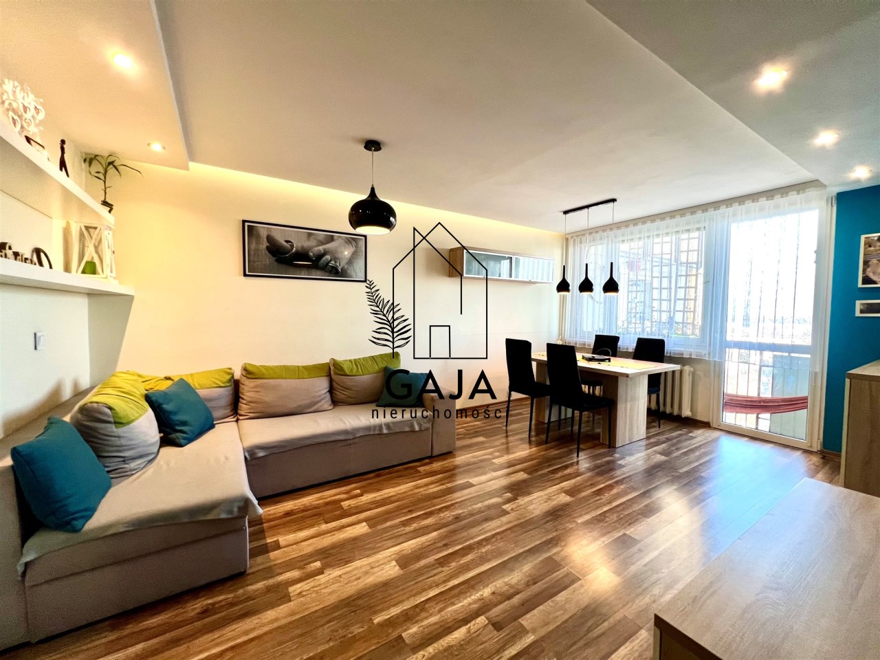 przestronny salon z wyjściem na duży balkon, idealny do wypoczynku,