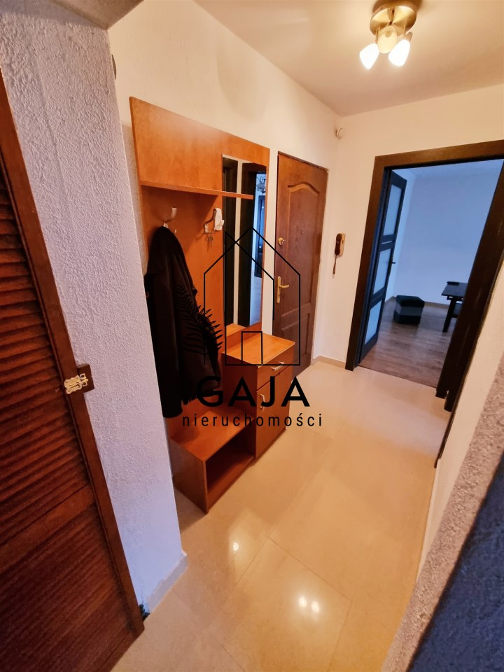 Do dyspozycji najemcy jest również oddzielna, w pełni wyposażona kuchnia z praktyczną zabudową i sprzętami, łazienka z wanną oraz funkcjonalny korytarz z miejscem na szafę lub półkę na buty.